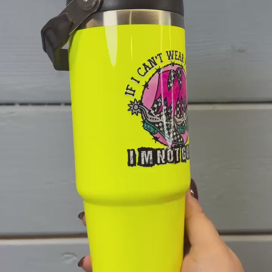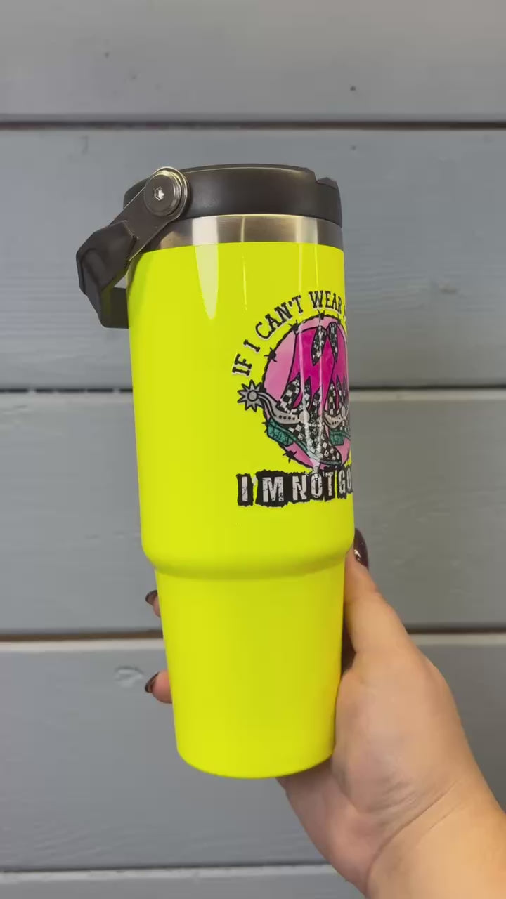 Neon Yellow 30oz Flippy with Handle - If I Can’t Wear My Boots Western Design