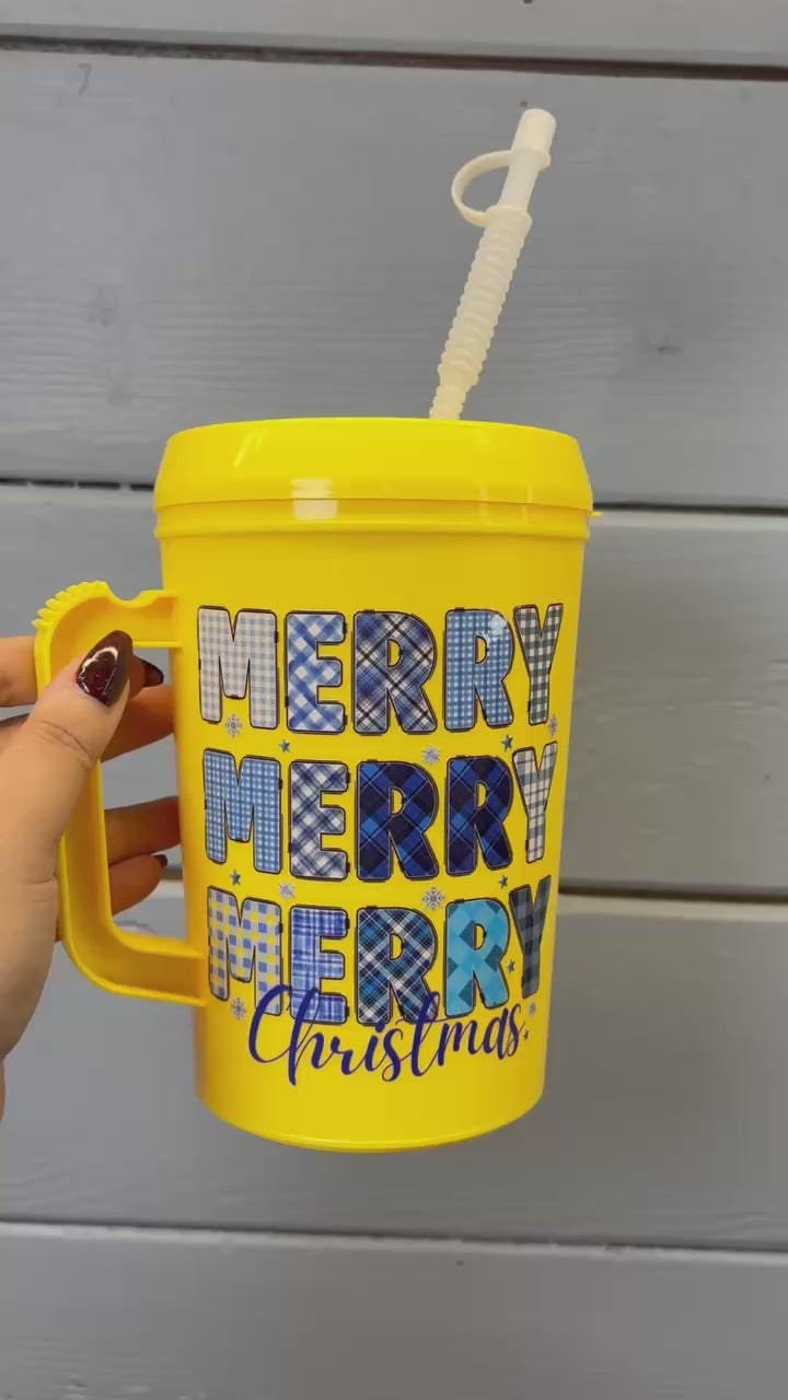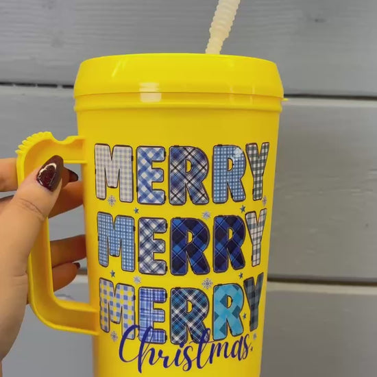 Yellow 34oz Yeetable Bladder Blaster - Blue Merry Merry Merry Christmas Design